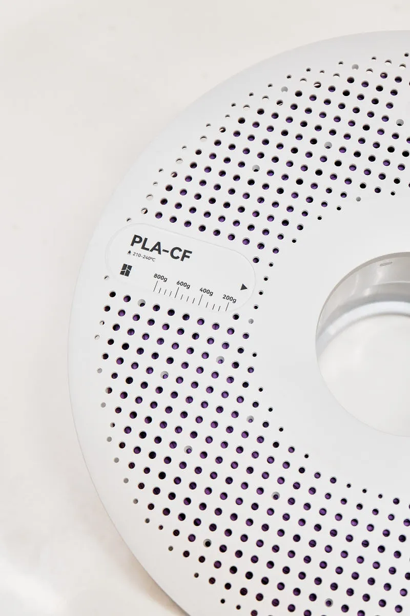 Bambu PLA-CF comes with a basic reusable spool, designed for convenient storage and multiple print sessions.