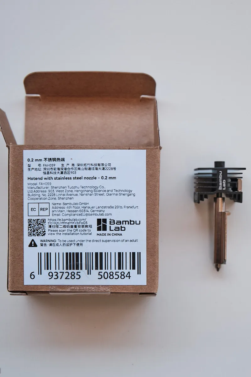 Bambu Lab Hotend with 0.2mm Stainless steel nozzle-For H2D/P2S/H2S