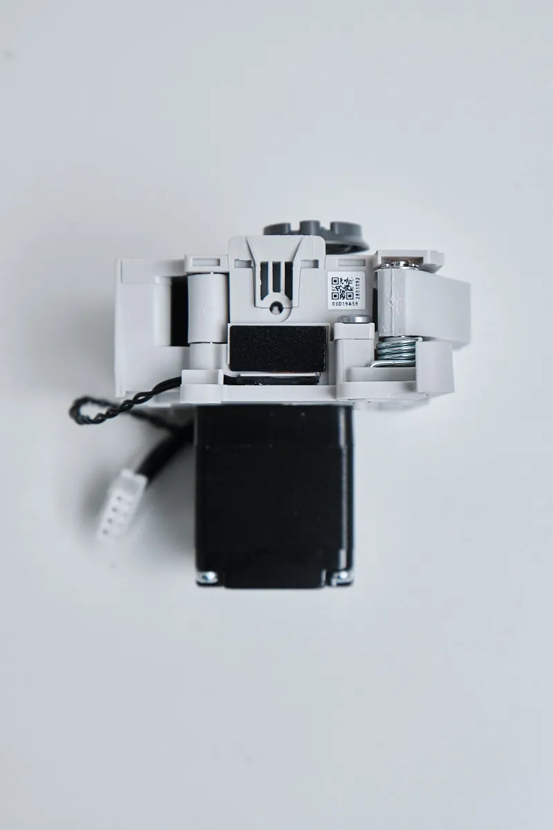 The extruder unit features dual hardened steel gears that precisely feed filament into the hotend. Compared to standard gears, hardened steel offers higher extrusion force, improved grip, and excellent resistance to wear.
