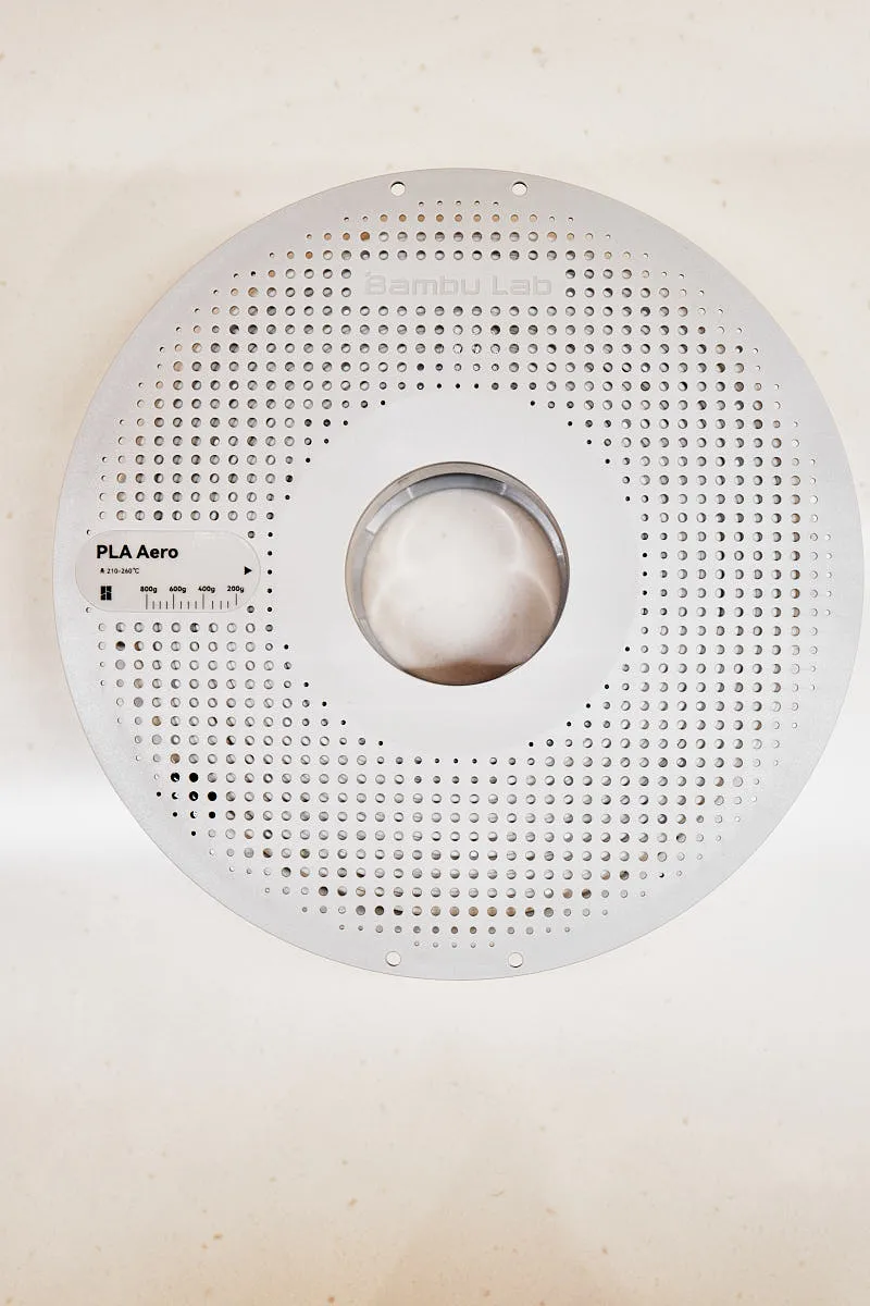 Although the filament density of Bambu PLA Aero is similar to regular PLA, the density of printed parts is reduced to approximately 50%–80%. When printing models of the same volume, PLA Aero parts can weigh about half as much as those made with PLA Basic.