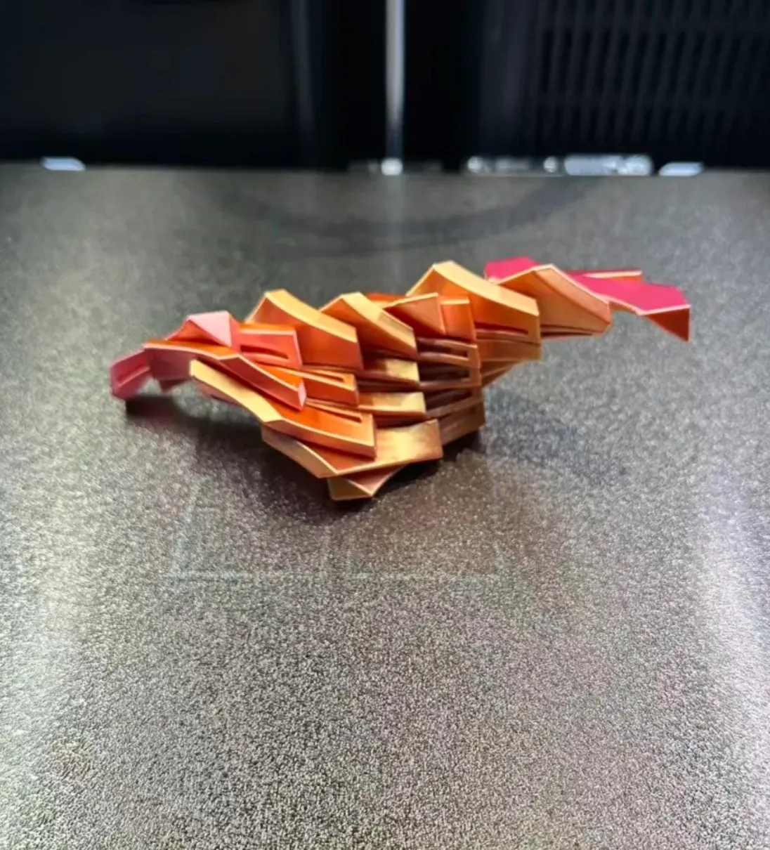 The integrated dual-color filament structure ensures consistent pink-to-gold transitions throughout one continuous print, adding depth and visual richness without the need for filament swaps.