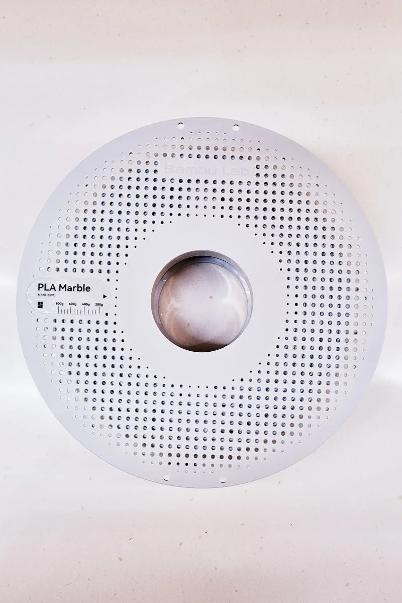 1 kg / 1.75mm Bambu PLA Marble filament on a reusable spool.