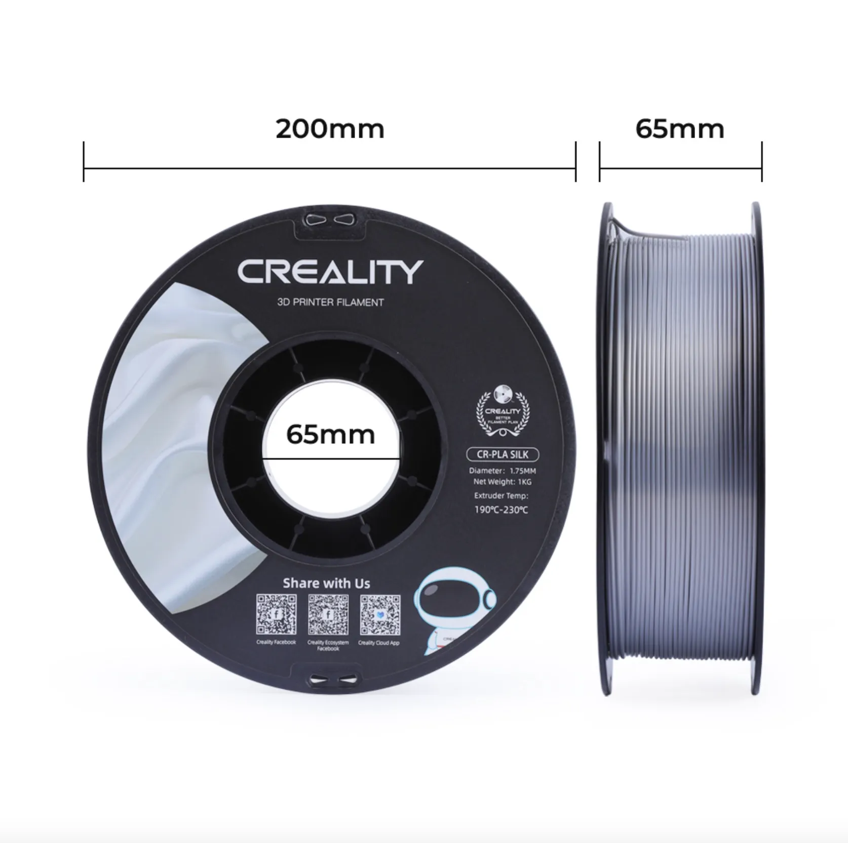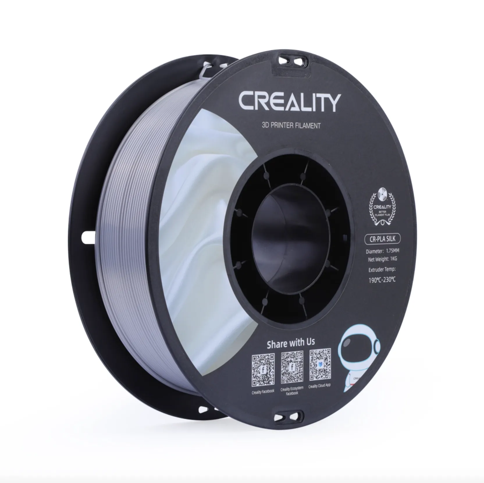| PRODUCT NAME CR-Silk Filament | FILAMENT DIAMETER 1.75 mm | NET WEIGHT 1 kg / 2.2 lb |
