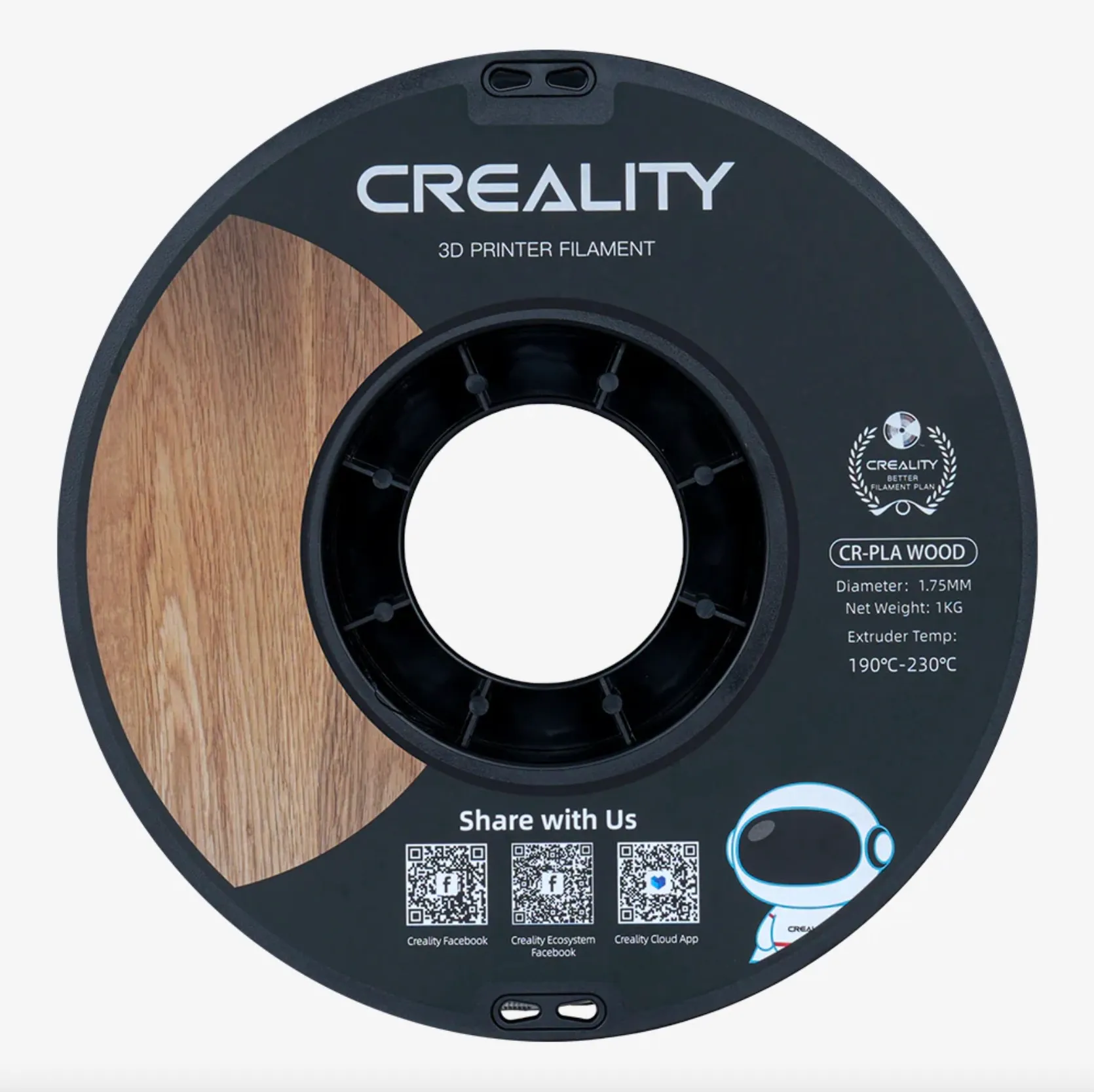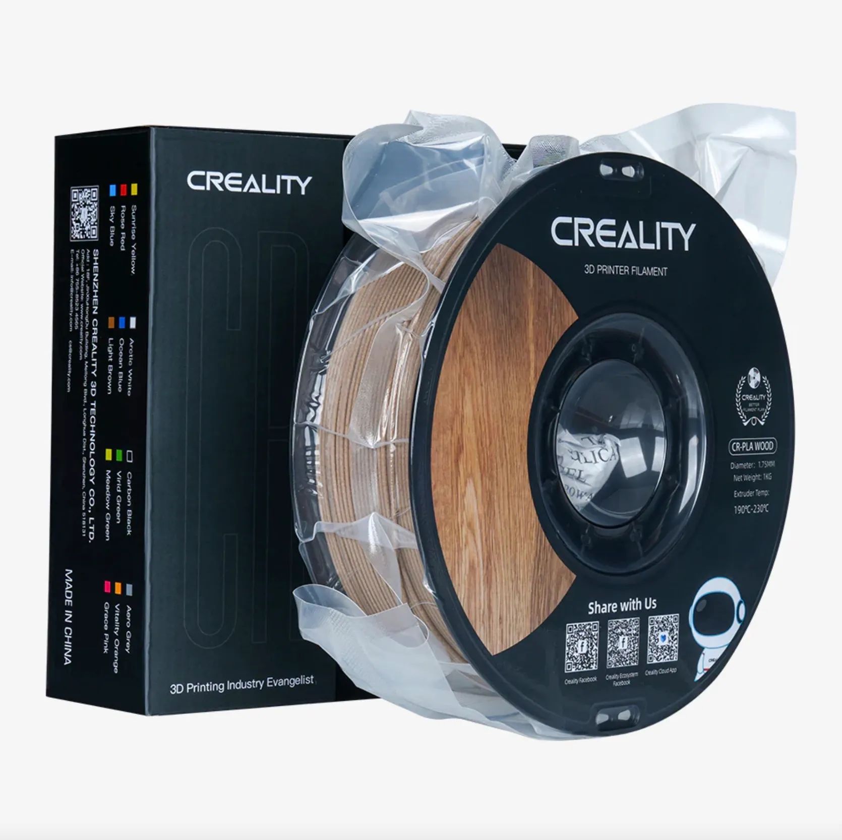 | PRODUCT NAME CR-Wood Filament | PRINT TEMPERATURE 190–230 ℃ | PACKING SIZE 210 × 210 × 70 mm |