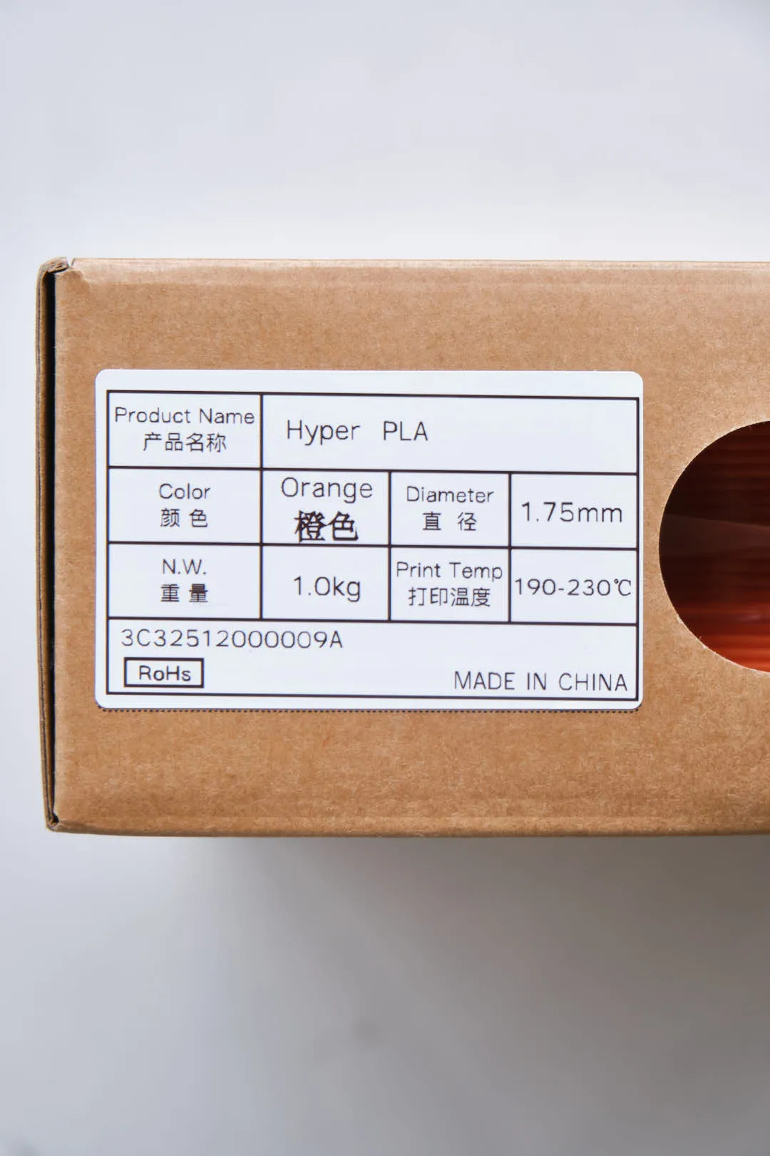 | PRODUCT NAME Hyper Series PLA/Polylactide | WIRE DIAMETER 1.75 ± 0.03 mm | NET WEIGHT 1 Kg / 2.2 lb |