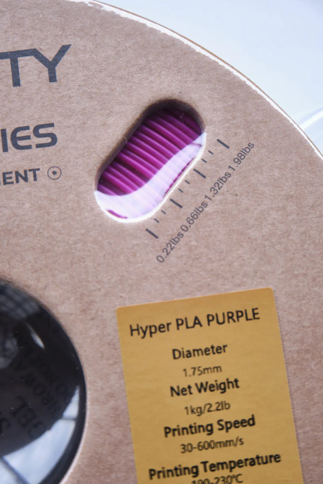 | PRODUCT NAME Hyper Series PLA/Polylactide | WIRE DIAMETER 1.75 ± 0.03 mm | NET WEIGHT 1 Kg / 2.2 lb |