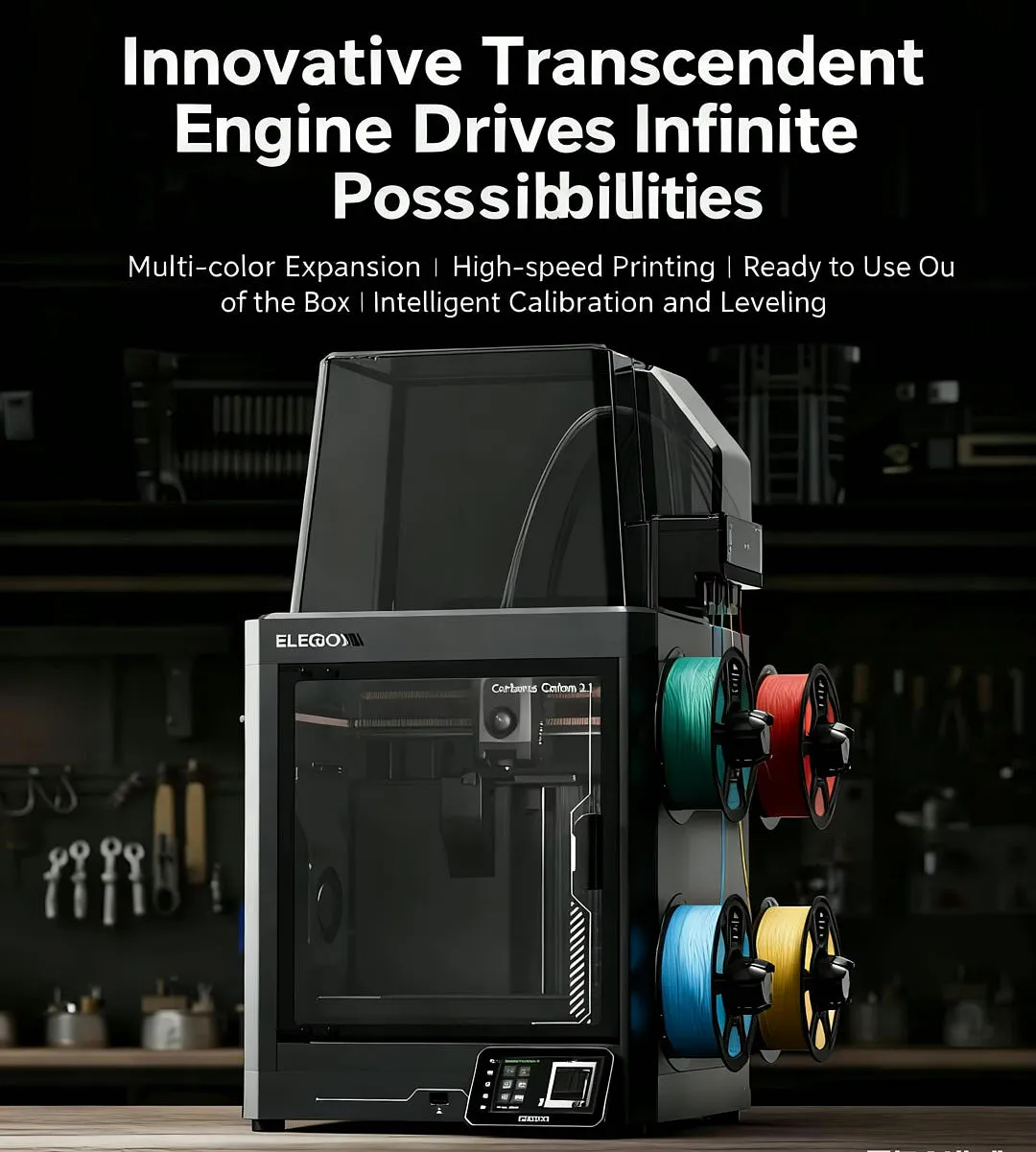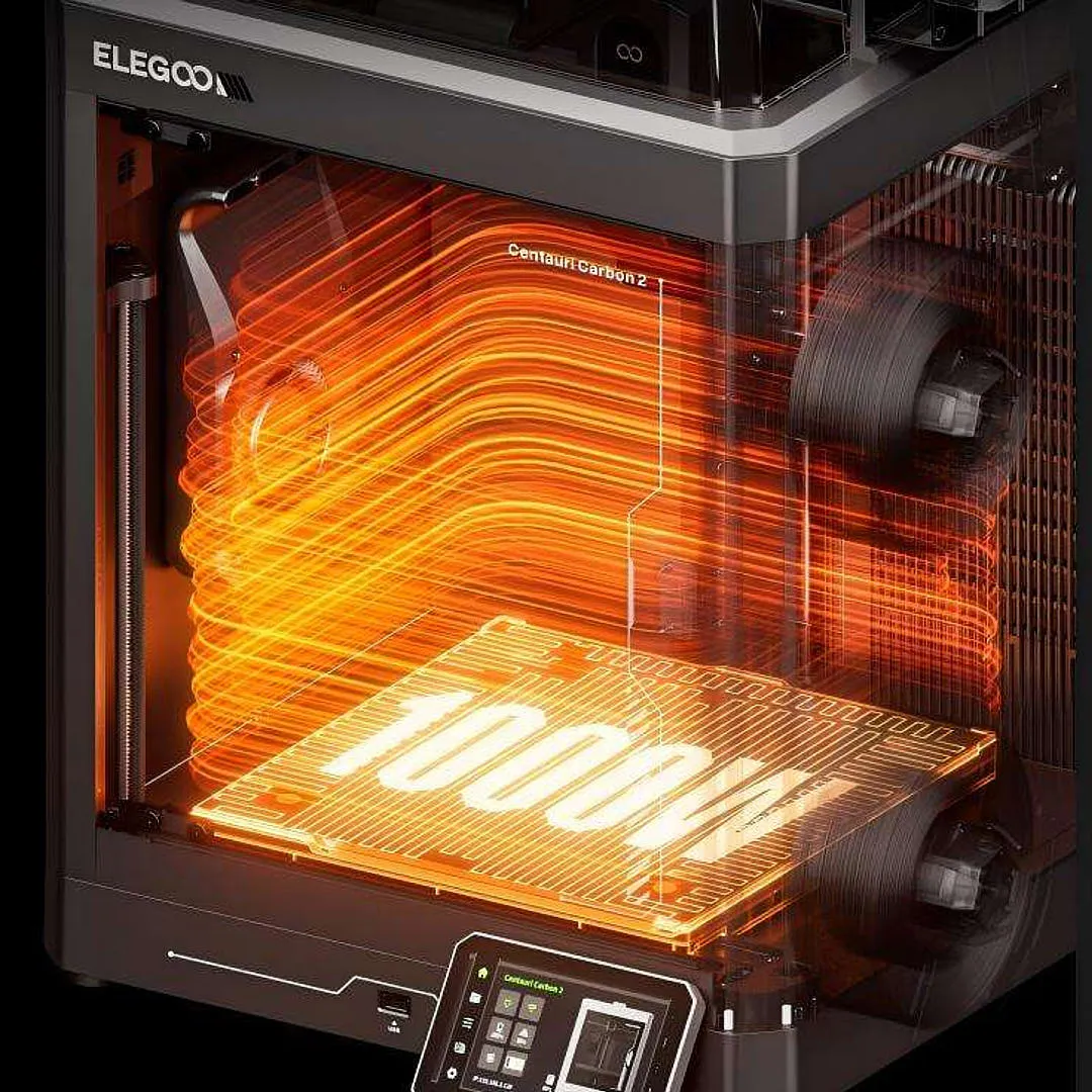 Designed for advanced materials, Centauri Carbonis is equipped with a 320 °Cbrass-hardened steel nozzle and superior cooling within a fully enclosed chamber. It specializes in carbon fiber-reinforced filament, allowing you to create strong, lightweight, andheat-resistant parts, ideal for aerospace, automotive, and athletic applications.