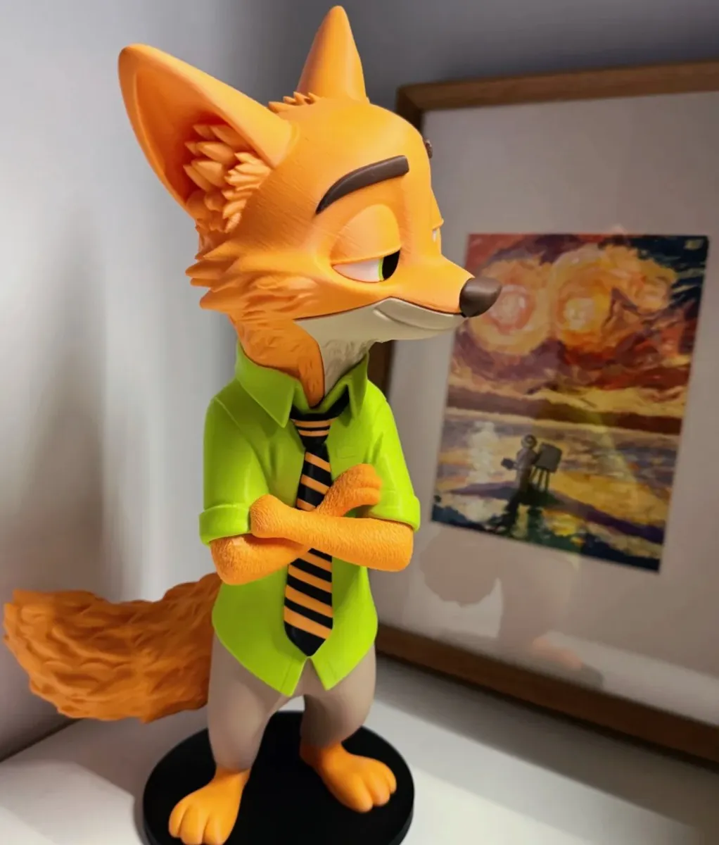 Detailed fox character figurine with textured fur and smooth matte orange surface